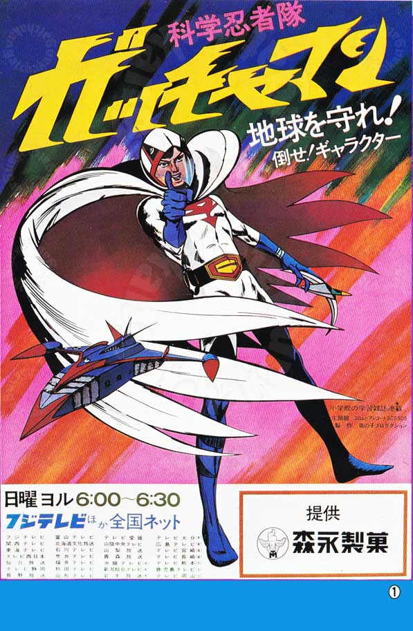 1)科学忍者隊ガッチャマン番組宣伝用ポスター 2)発行日1972年頃、 3)発行所タツノコプロ 4)編集及び著者絵はタツノコプロ 5)値段番組宣伝用ポスター非売品、 6)大きさA2版 7)分類 ポスター 8)解説及び備考及び蛇足
