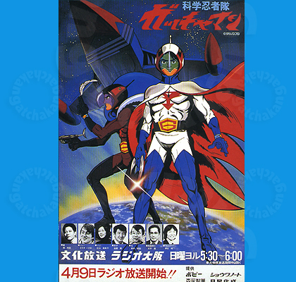 《pickup》 トップ更新しました。ラジオ版ガッチャマンの宣伝ポスターです。 放送期間 1978年(昭和53年)4月9日〜1978年(昭和53年)9月3日 全16話(途中、相撲中継で何度か中断)。
